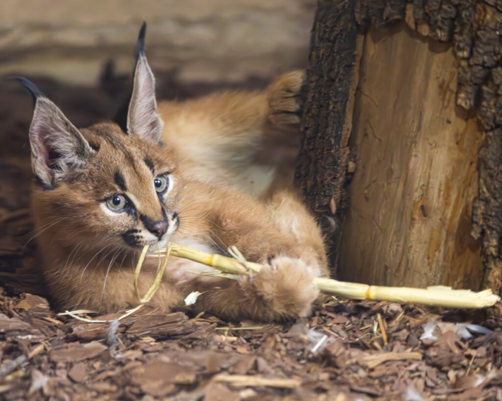 Am 17. November 2025 fand zu unserer großen Freude hinter den Kulissen der Karakalanlage eine Geburt statt. Es wurden zwei Jungtiere geboren, von denen leider eines innerhalb der ersten Lebensstunden verstarb. Das zweite Jungtier ist jedoch erfreulicherweise sehr fit und entwickelt sich seit mehr als sieben Wochen prächtig. Das kleine Männchen erhielt den Namen Karlos.