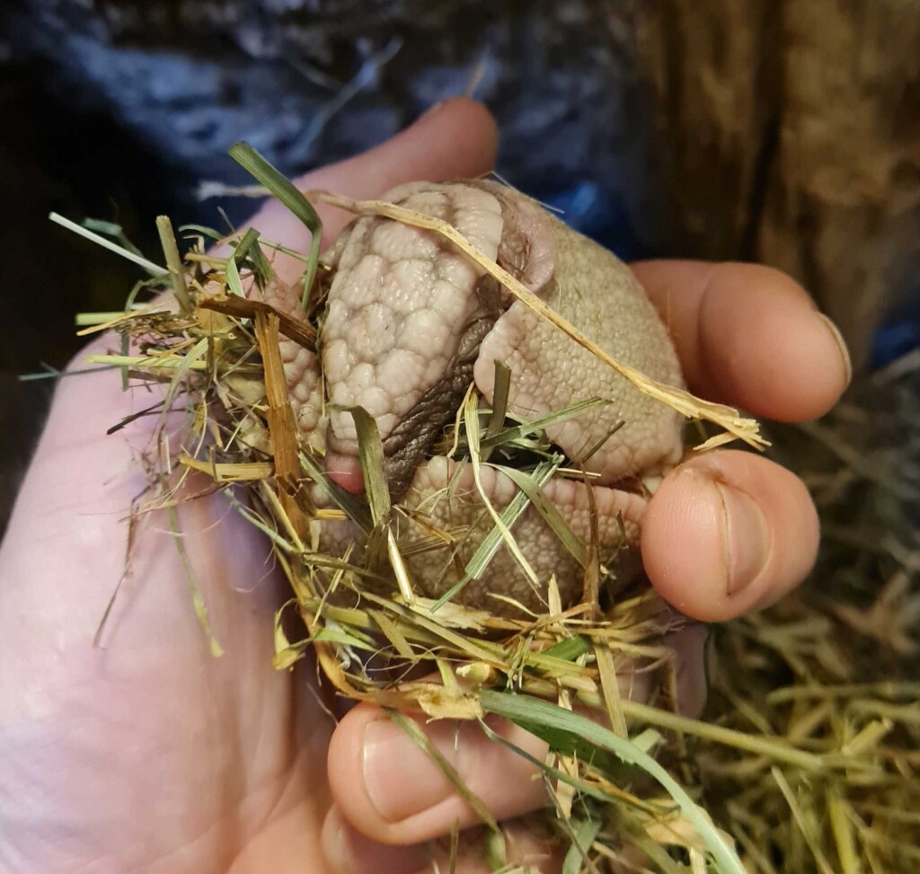 Das Kleine ist ungefähr so groß wie eine Mandarine und der erste vorsichtige Check ergab, dass es ein männliches Jungtier ist.